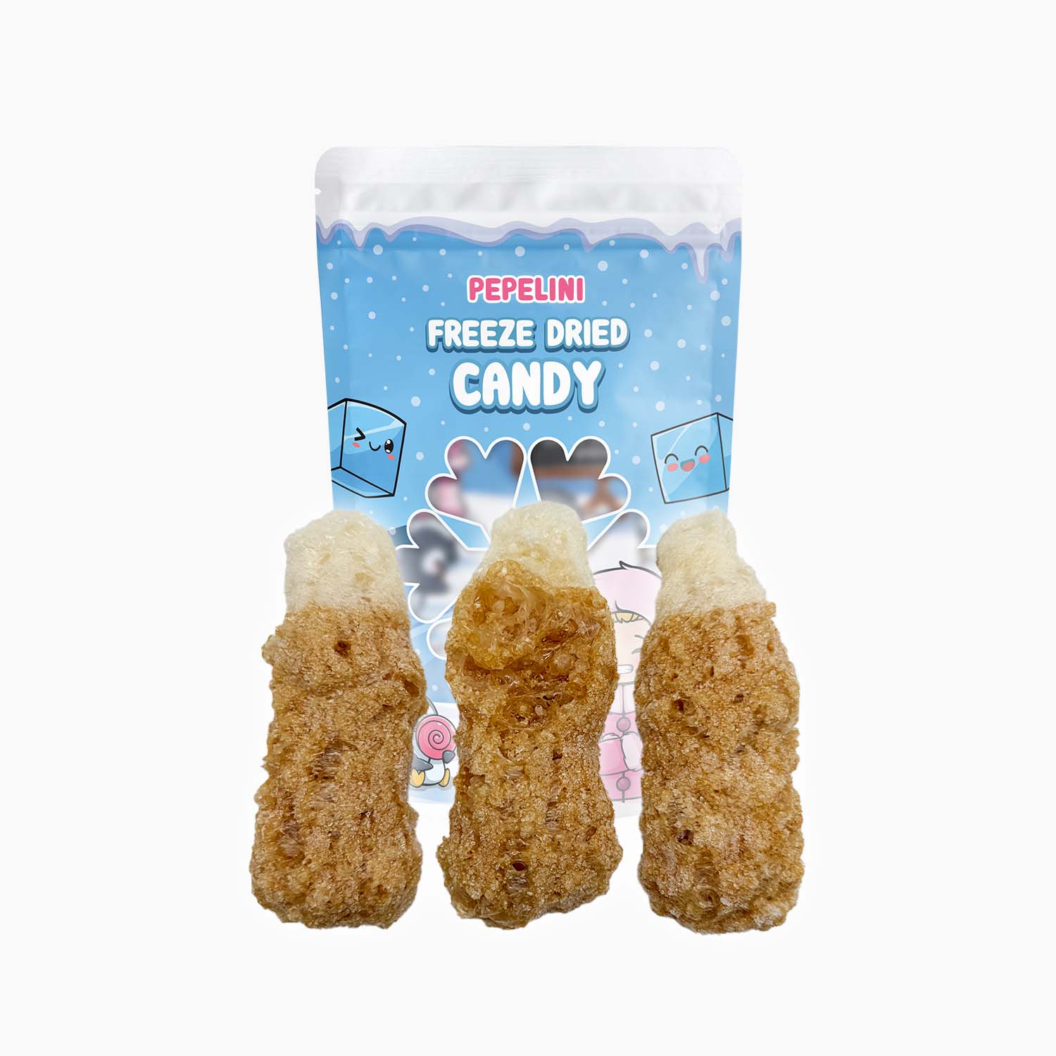 Eine knusprige Variante der super leckeren Riesen Colaflaschen. Einmal gefriergetrocknet, wird dieses Fruchtgummi luftig, extrem knusprig und mega lecker! Eine Geschmacksexplosion ist definitiv vorprogrammiert!