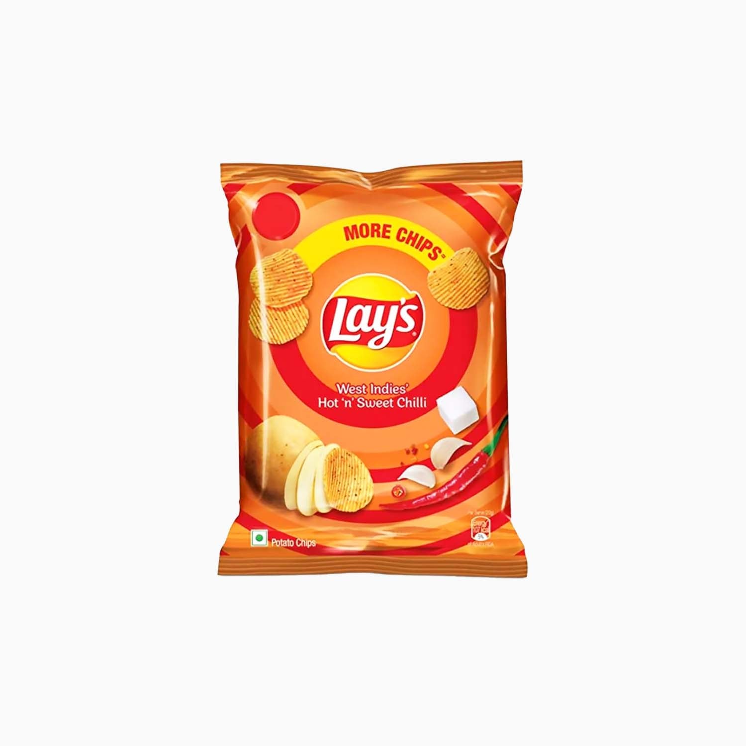 Lays West Indies' Hot 'n' Sweet Chilli sind knackige geriffelte Chips, die nach scharfer Chilli und süßen Gewürzen schmecken.