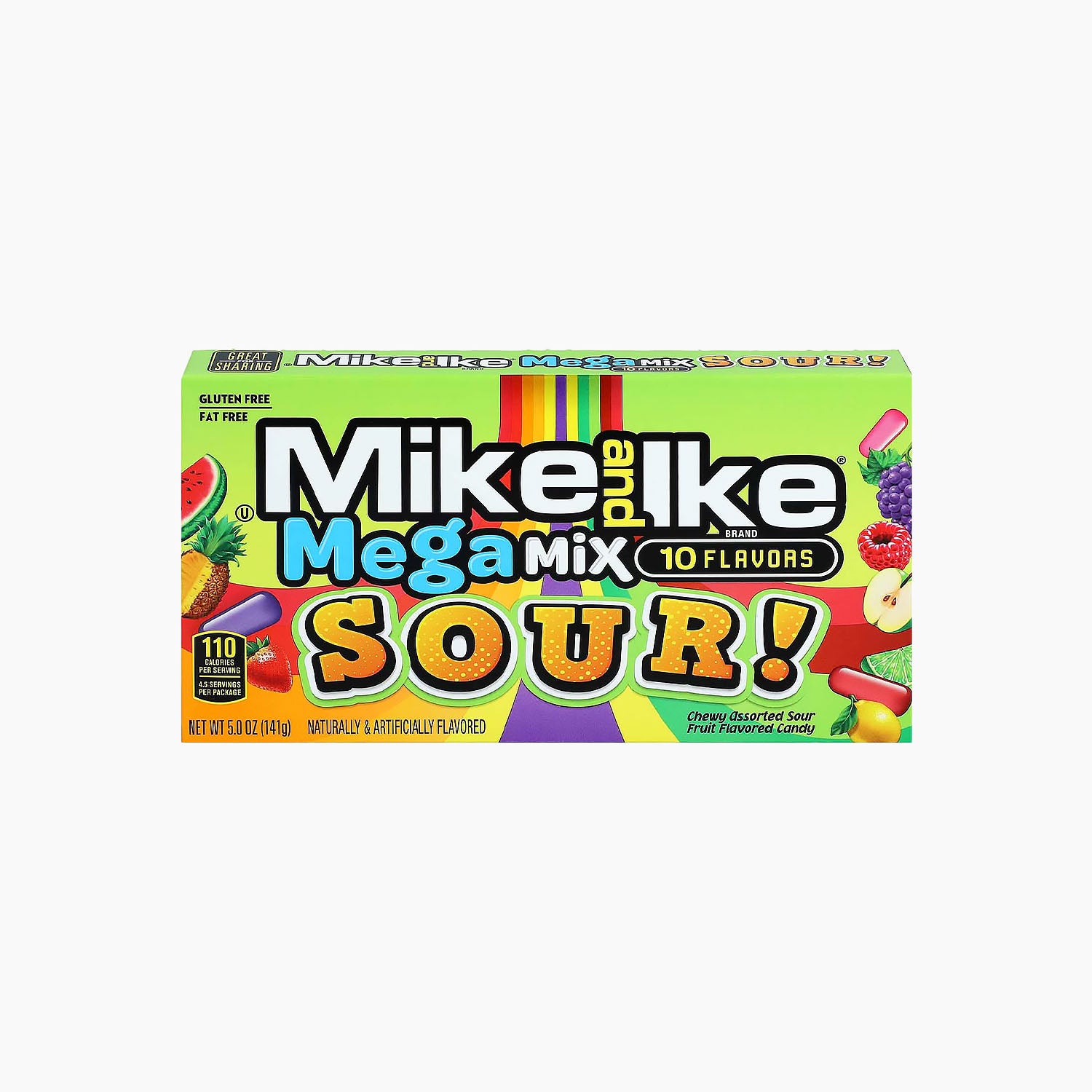 Die bunte und saure Mischung für alle, die sich nicht entscheiden möchten! Die Kaubonbons überzeugen alle Mike and Ike Fans mit gleich 10 extra-sauren Geschmacksrichtungen:
